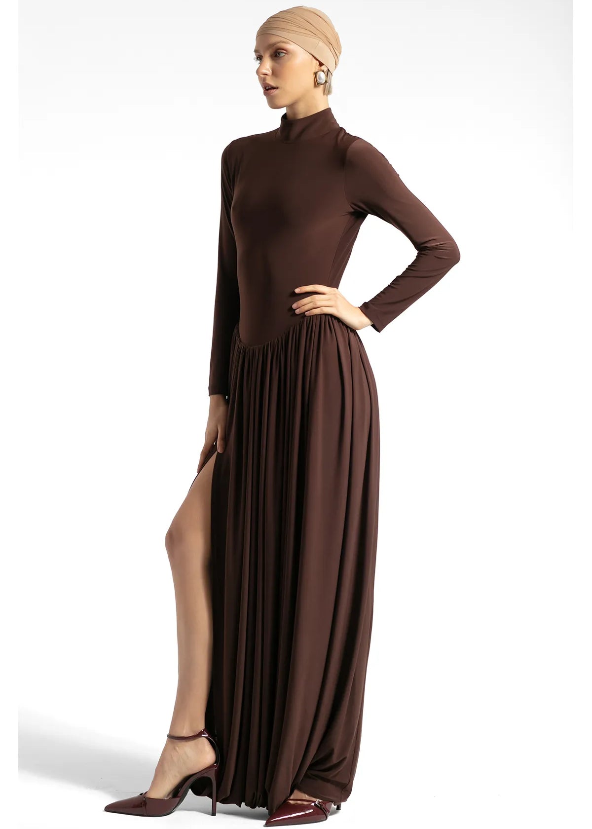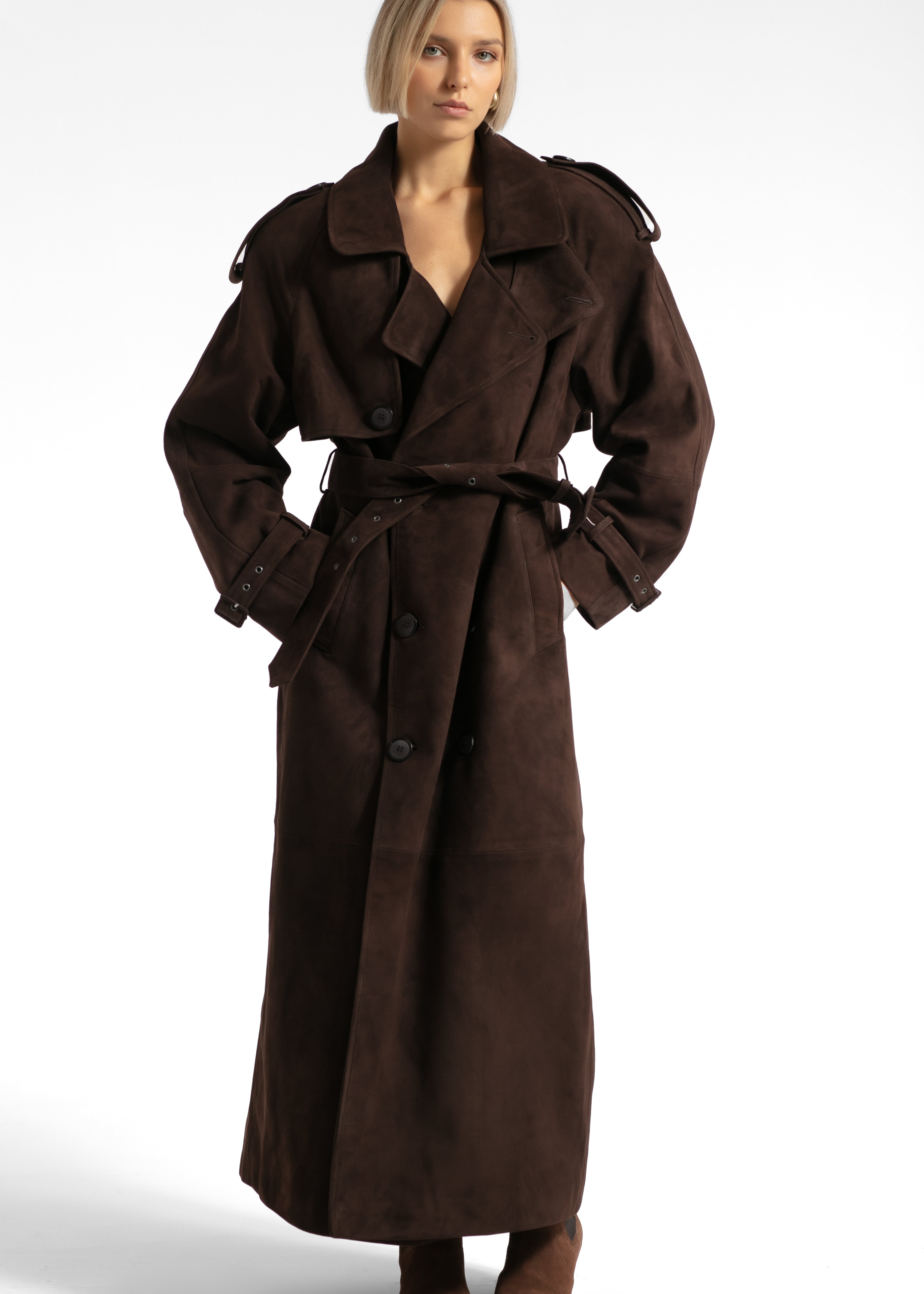Laulei %100 Gerçek Deri Uzun Kahverengi Manto