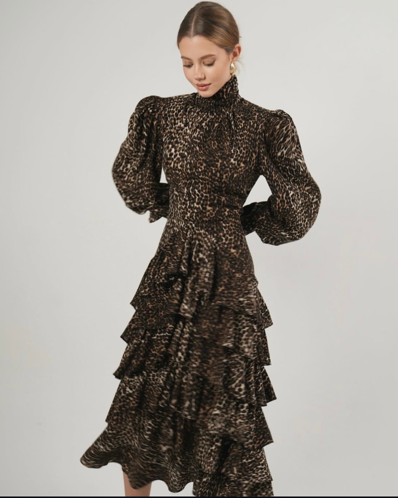 Laulei Jasmine Fırfır Detaylı Leopar Midi Elbise