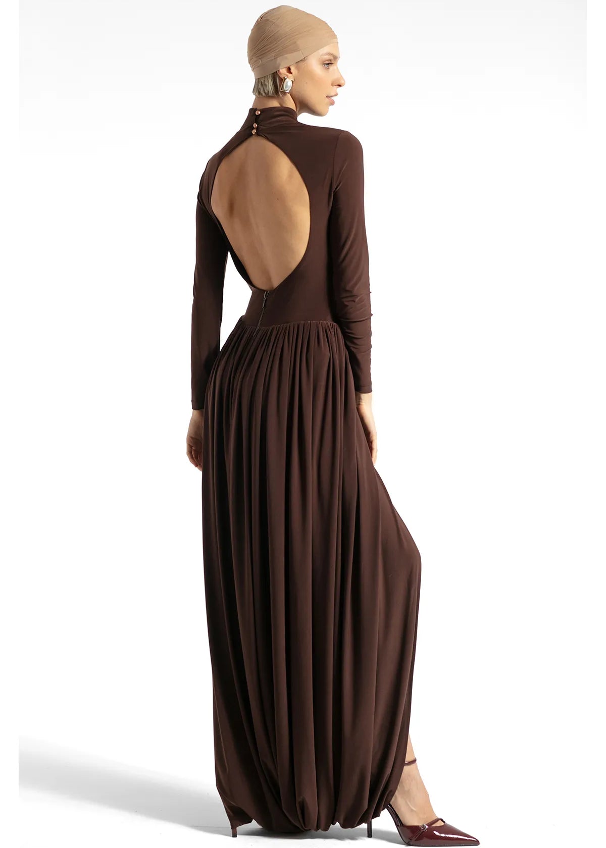 Laulei İnci Dress Sırt Dekolteli Maxi Siyah Elbise
