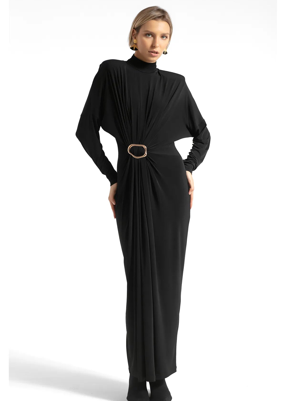 Laulei İnci Dress Sırt Dekolteli Maxi Siyah Elbise