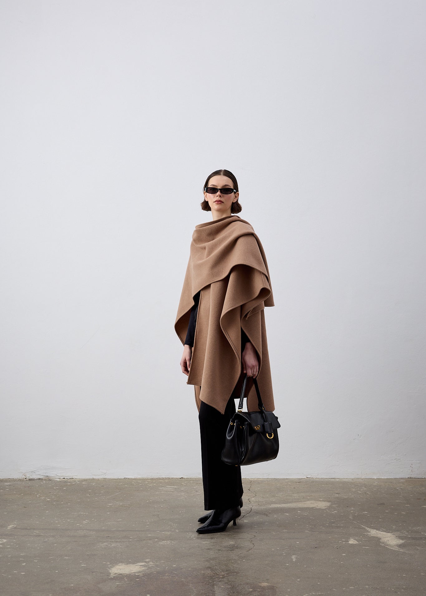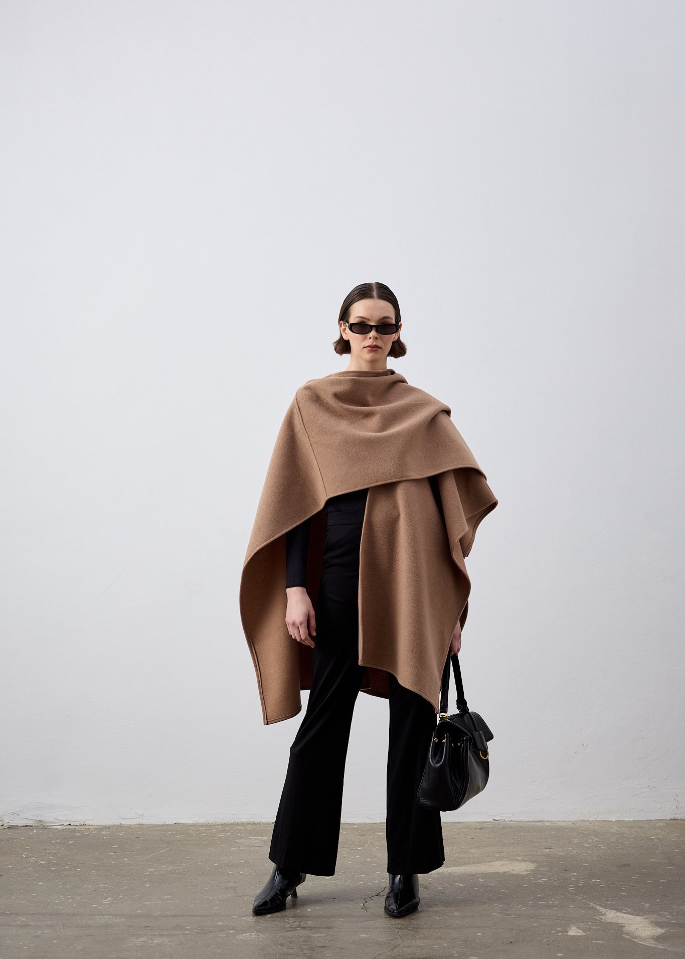 Yünlü Pelerin Panço Açık Kahve