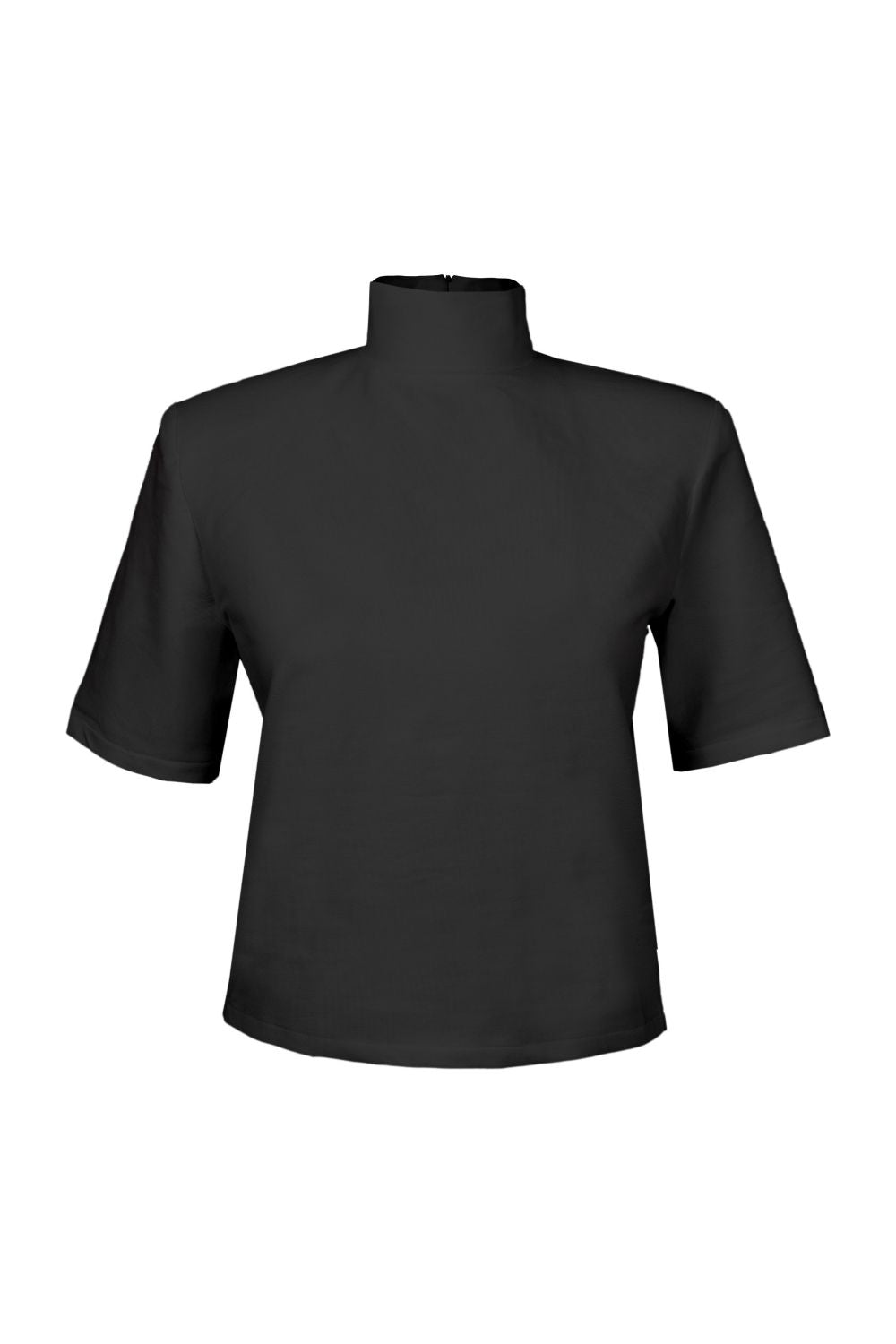 - Siyah rengiyle her mevsime uyum sağlayan bu vatkalı dik yaka t-shirt, günlük kullanım için idealdir.
