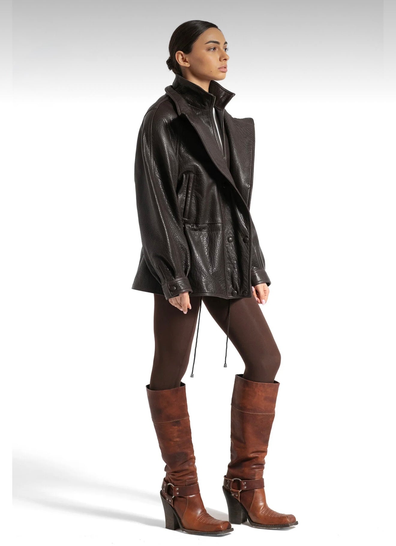 Bu deri ceketin uzun ömürlü olması için düzenli olarak deri bakım ürünleriyle temizlenmesi ve profesyonel deri temizleme yöntemleriyle bakımı önerilir. Doğrudan güneş ışığı ve ısı kaynaklarından uzak tutulması, deri malzemenin kalitesini koruyacaktır.