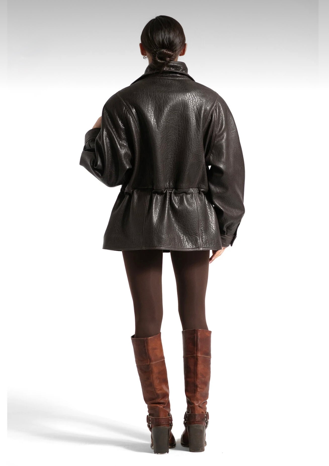 Modern ve çarpıcı tasarımıyla öne çıkan bu %100 gerçek belden bağlamalı kuzu derisi ceket, şıklığı ve işlevselliği bir araya getiriyor.