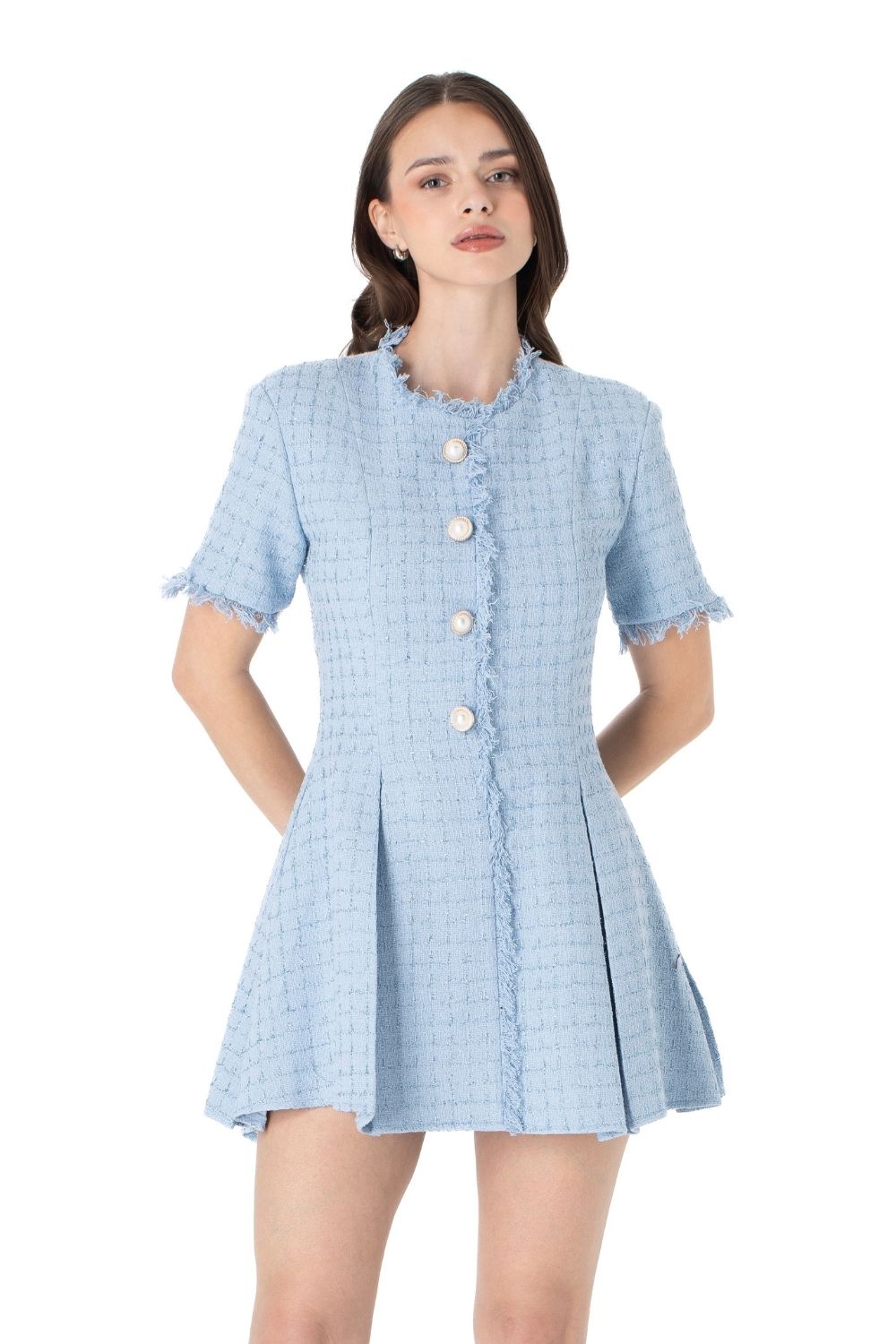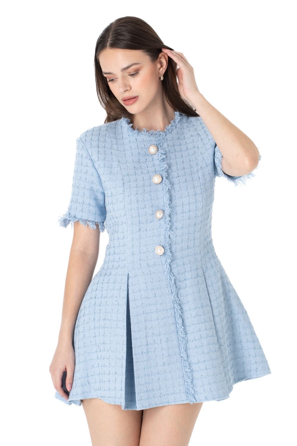 İnce işçiliğin ve seçkin tasarımın buluştuğu İndira Tuvit Mini Elbise, dokuma tuvit kumaşının sofistike dokusunu kusursuz bir silüetle bir araya getirir. Tamamı astarlı yapısı ve özenle yerleştirilmiş dekoratif düğmeleriyle, her ayrıntıda premium bir duruş sergiler. Bel hattını zarifçe vurgulayan kesim, pileli etek formuyla hareketli fakat bir o kadar da elit bir görünüm sunar.