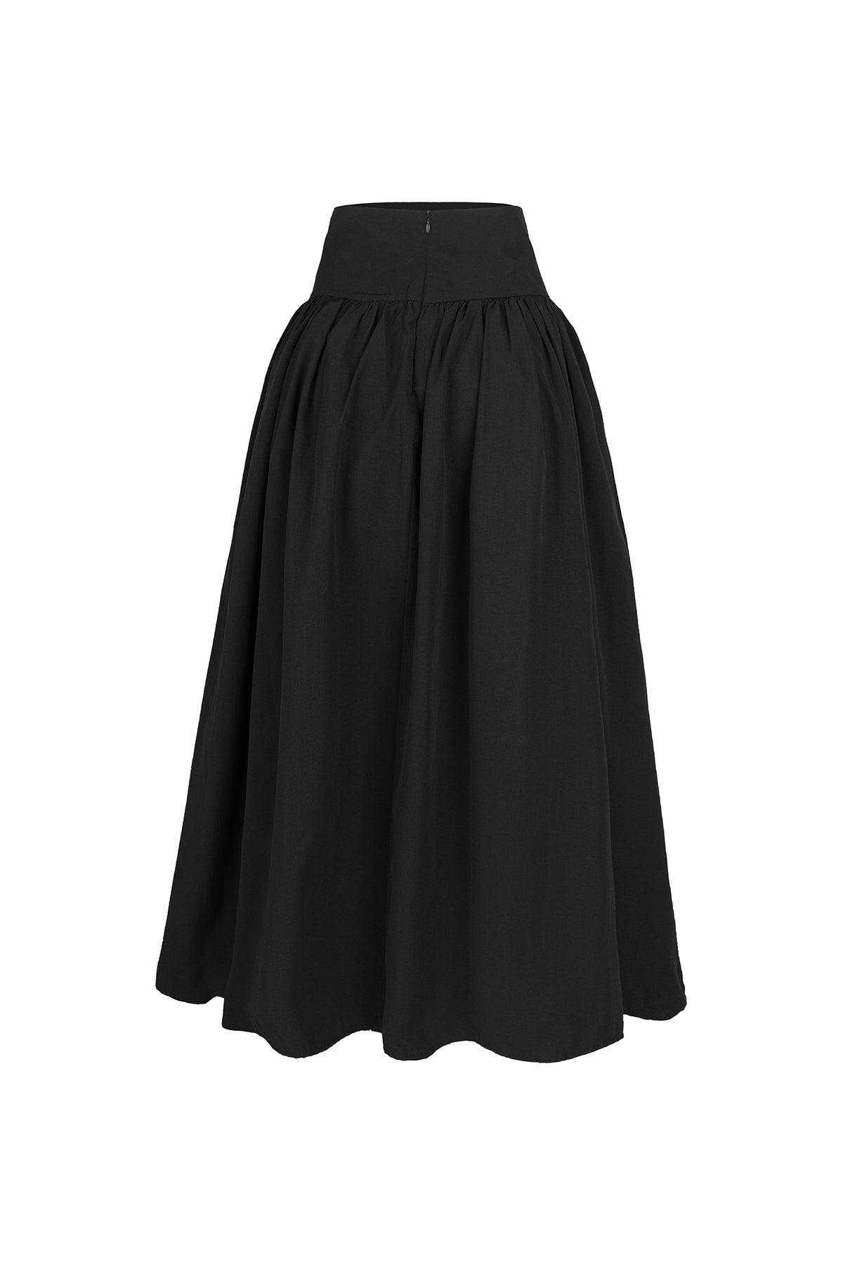 Poplin Yüksek Bel Siyah Midi Etek